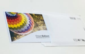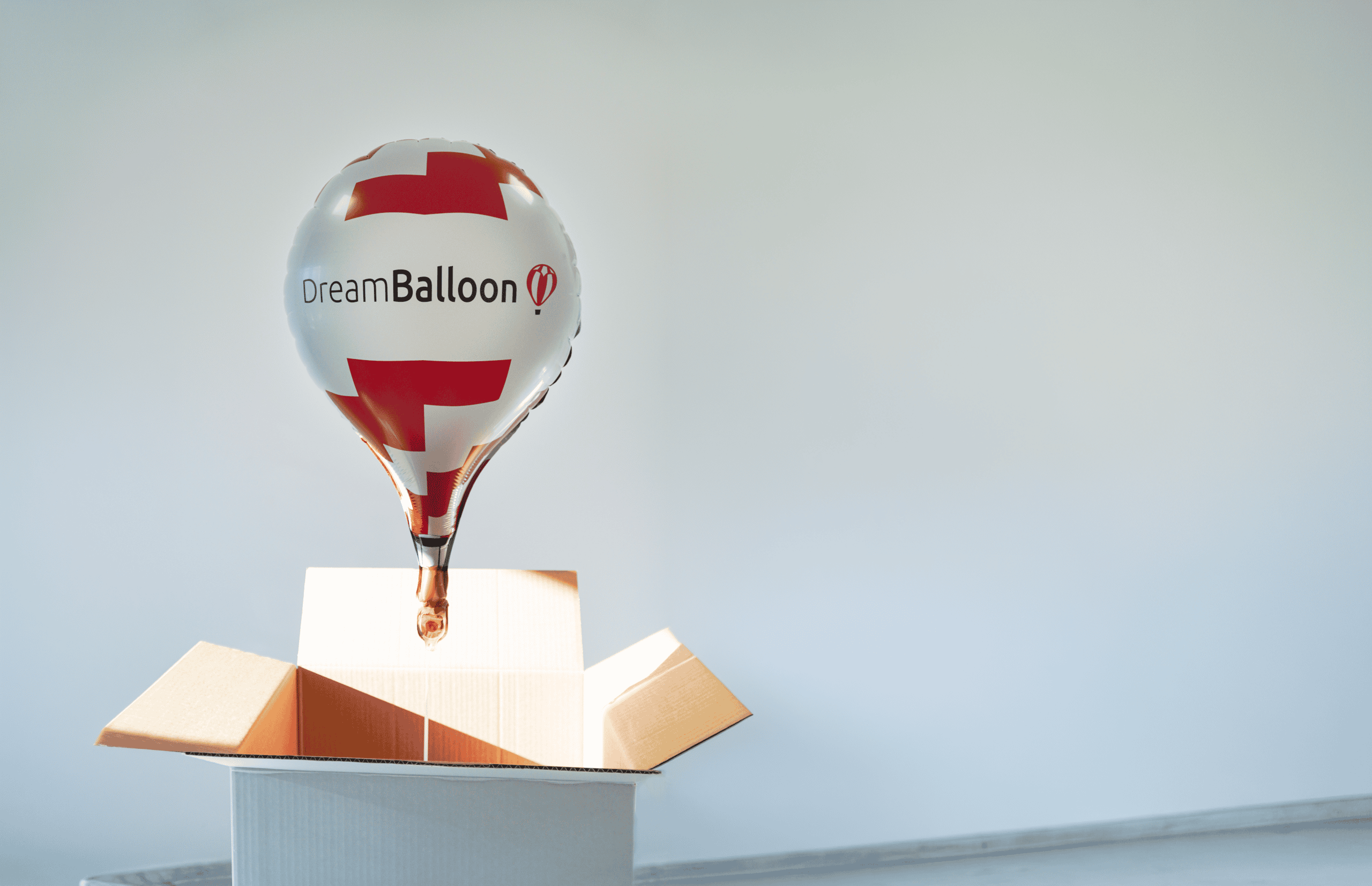Når gavekassen åbnes stiger en DreamBalloon helium ballon op. Den er hæftet til en flot trykt ballonbillet i kuvert. Her selve åbningen af gaven en oplevelse i sig selv.