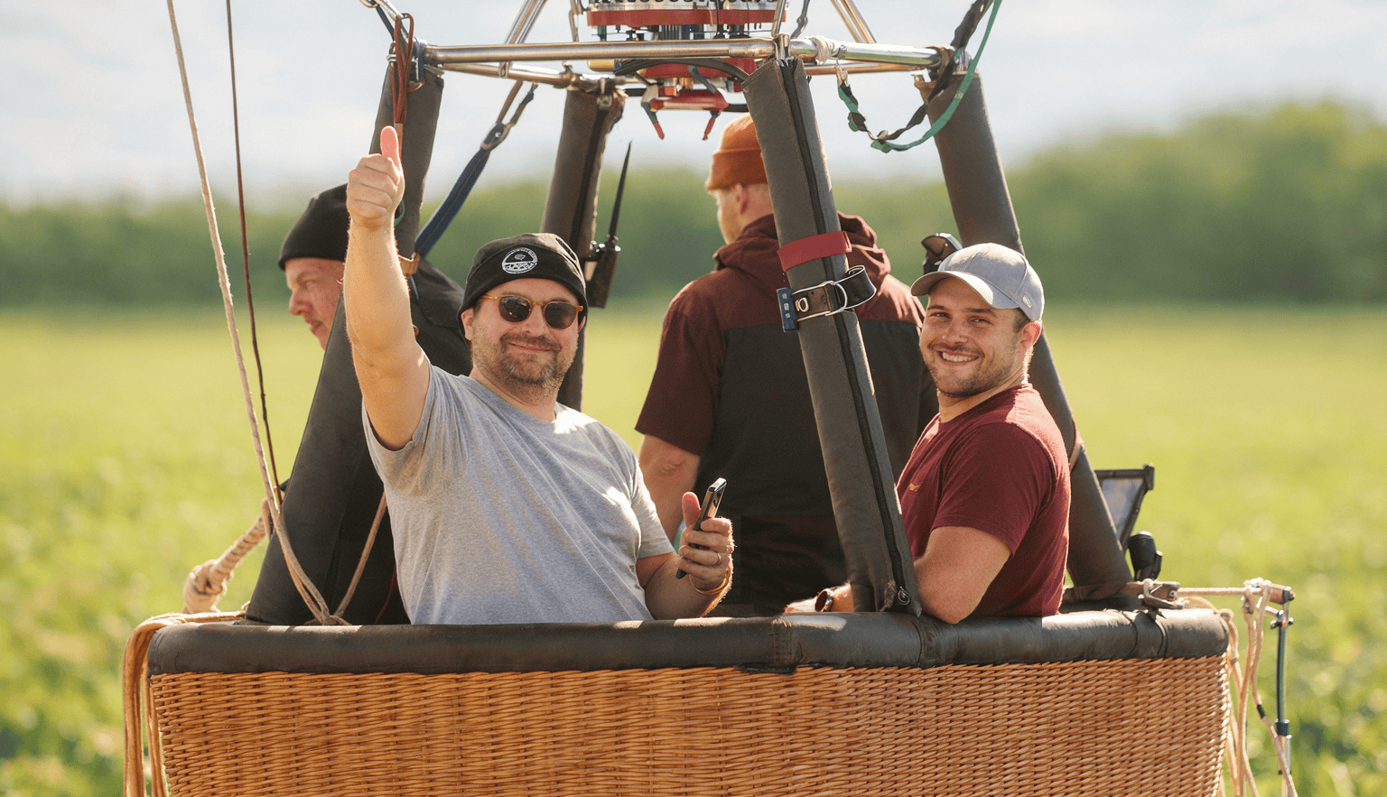 Varmluftballoner kan ikke styres. De følger vindens retning, og man ved aldrig helt præcis hvor man kommer til at lande. Efter ca 50 minutter begynder piloten at lede efter et egnet landingssted.